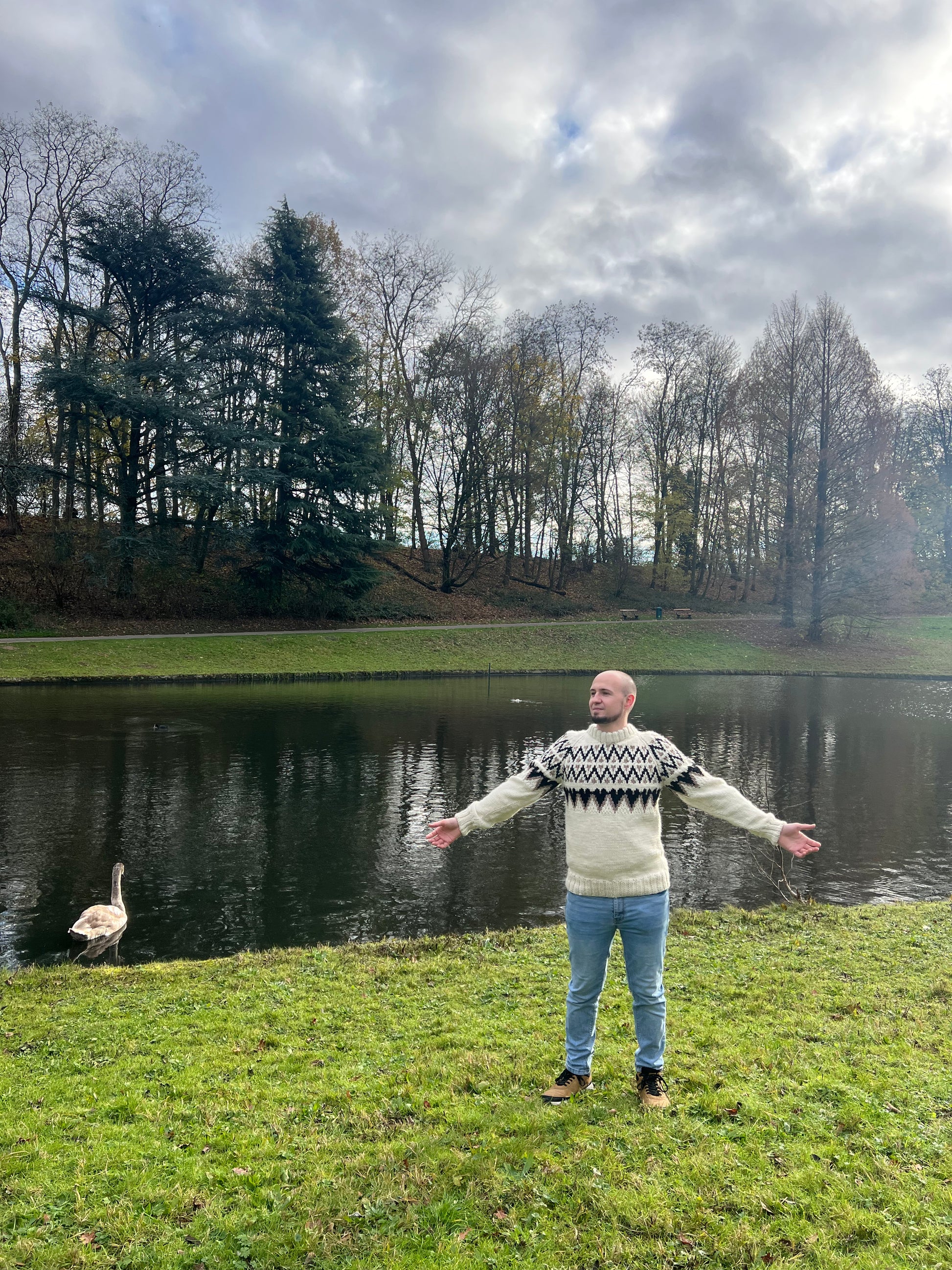 Pull unisexe tricoté à la main avec de la laine de mouton certifiée, reconnue pour sa chaleur et sa durabilité. Il présente des motifs géométriques inspirés des Andes et des tons terre qui mettent en valeur son esthétique traditionnelle. Sa texture confortable et sa structure résistante en font un allié idéal pour les climats froids.
